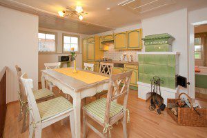 • 1 Wohnküche mit Esstisch, Kachelofen, Leseecke