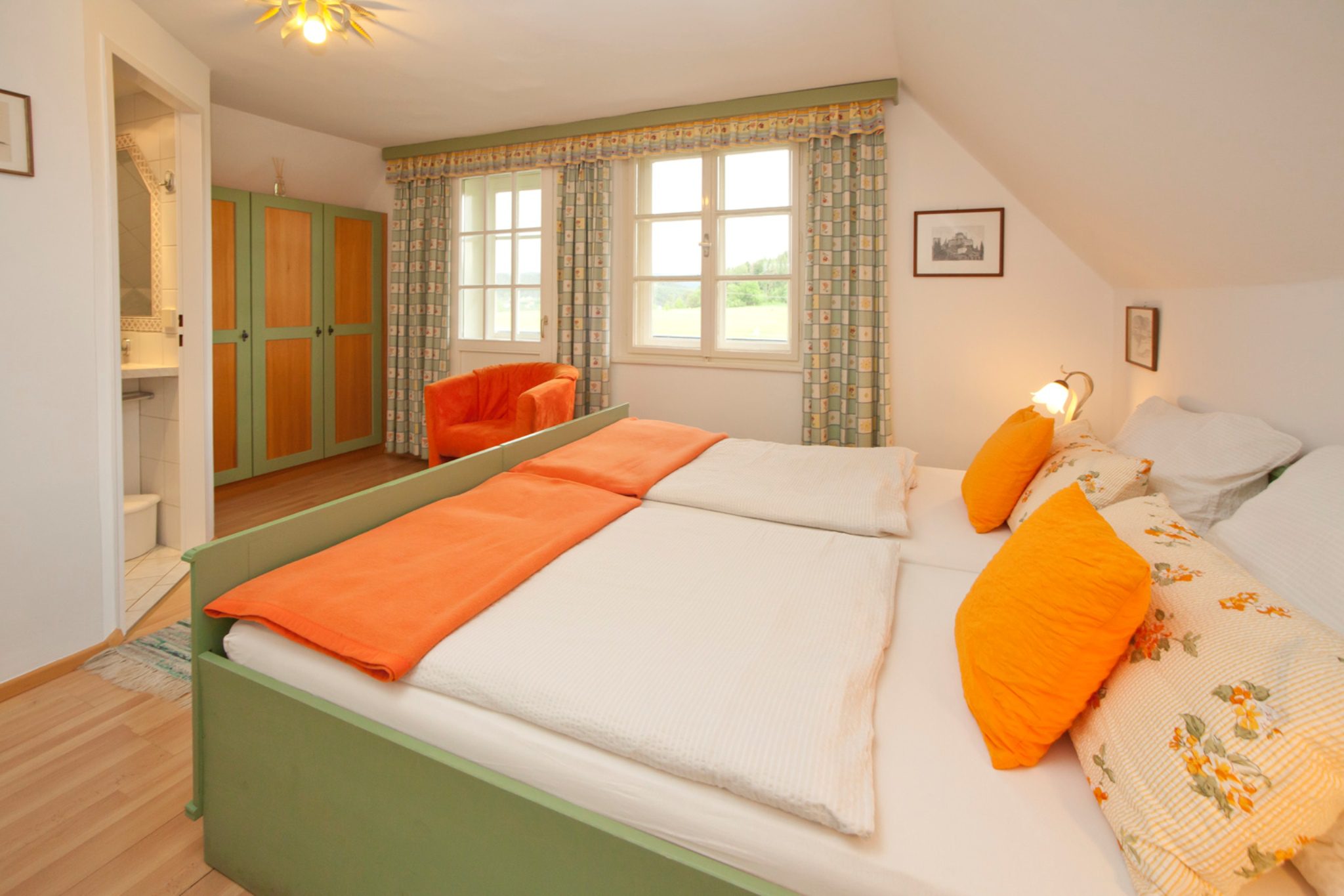 • 1 Schlafzimmer mit Doppelbett, Bad mit WC und Dusche, TV